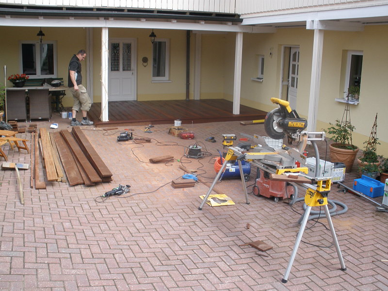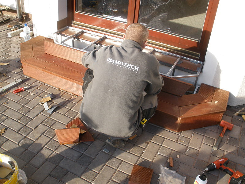 Montáže venkovních teras. Je jen velmi málo dřevin, které se dají použít na venkovní terasy. Většinou se jedná o exotické dřeviny jako například Ipe „železné dřevo“, Cumaru (Brazilský ořech), Massaranduba, Akát, Sibiřský modřín, Bankiray. Terasy a pergoly realizujeme u domů, na střechách, v zahradách. Montujeme i rybníková mola. Všechny druhy venkovních teras ošetřujeme speciálními olejovými nátěry, které zvyšují odolnost v exteriéru. Životnost těchto dřevin je od 15 do 30 let dle druhu dřeviny. Terasy jsme schopni montovat jak na samonosný rošt, tak na připravený betonový základ. V případě potřeby betonový základ vytvoříme. Vše se odvíjí od přání zákazníka a našich dlouholetých zkušeností, které zužitkováváme při realizaci našich zakázek.